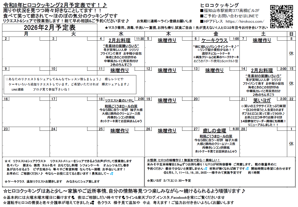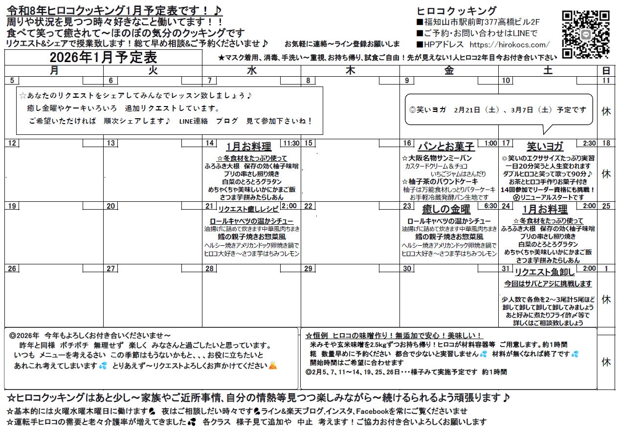『人生と健康は笑いと食生活 』をテーマで43年のヒロコクッキングを締めくくれたら と思っています!